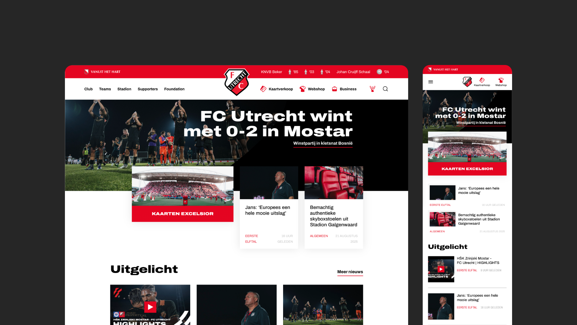 The work also earned recognition beyond the stands. FCUtrecht.nl was named Website of the Year in the Football category in both 2019 and 2020.