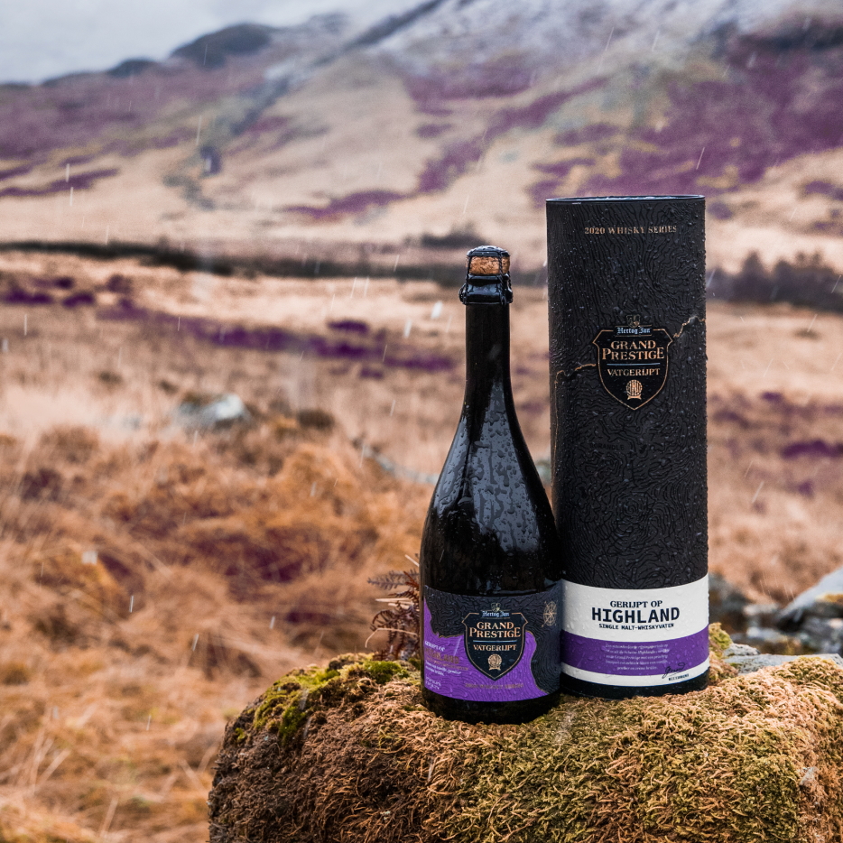 Each year the brewers behind this crown jewel create Vatgerijpt, a limited‑edition taste adventure for brewers and beer lovers, and a key part of Hertog Jan’s communication. For the fourth edition, Grand Prestige matured for nine months in barrels from four Scottish whisky regions. A new variant called for a new story that did justice to time, craft and place.